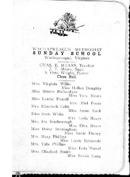 A 1908 Christmas program at the Wachapreague Methodist Sunday School.