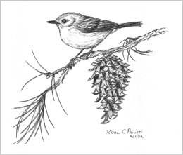 In a departure from her works in watercolor, Karen entered a pen and ink drawing in the 2002 logo contest for the 8th Annual Migratory Bird Celebration. Thousands attended the event at the Chincoteague National Wildlife Refuge. Karen's winning entry of a pine warbler graced the celebration's brochure cover, t-shirts, pins, and advertisements.