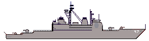 | The Ticonderoga was the first of the Aegis missile cruisers. She was commissioned in 1983 and displaces 9055 tons. The advanced Aegis system allows her to not only protect herself from incoming missiles but also allows her to track missiles fired at other ships in her area. |