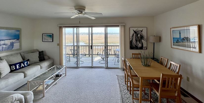 Enjoy spectacular sunrises from the balconies which overlook the beautiful salt marsh and waterways.