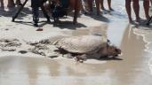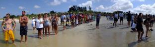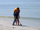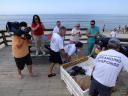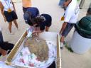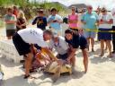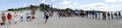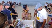 "Trouble", a loggerhead turtle that was rescued in Onancock Creek, being released at the Cape Charles waterfront, Friday 7 September 2012